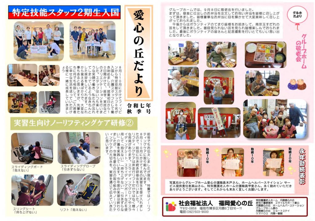 愛心の丘は福岡市博多区月隈でショートステイ、ホームヘルパーステイション、居宅介護支援事務所、ケアハウス、グループホーム、特別養護老人ホームを運営しています。